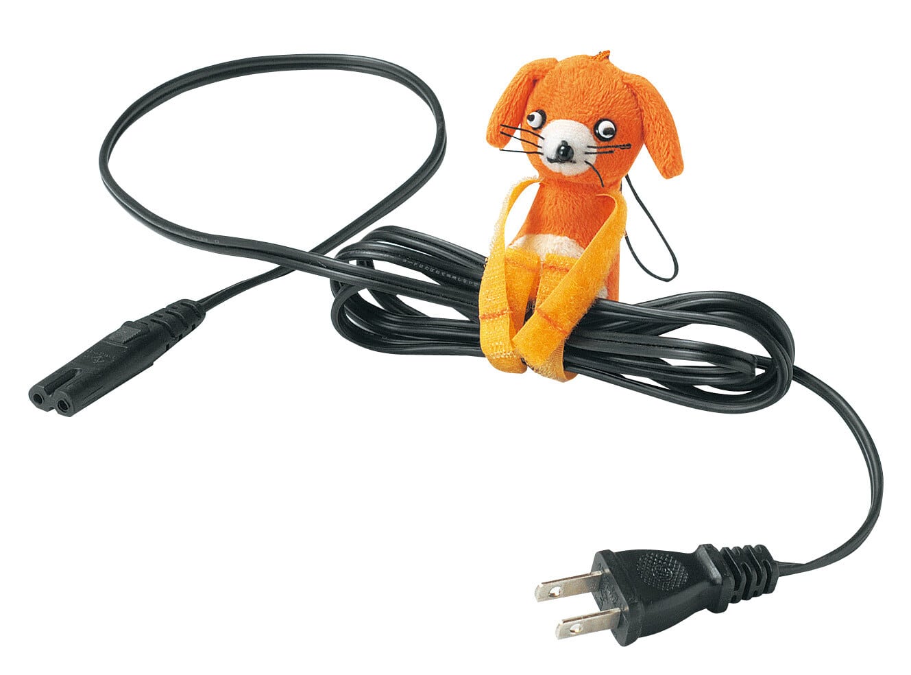 両手両足のマジックテープでイヤホンやコードをビリッとつかんでまとめます