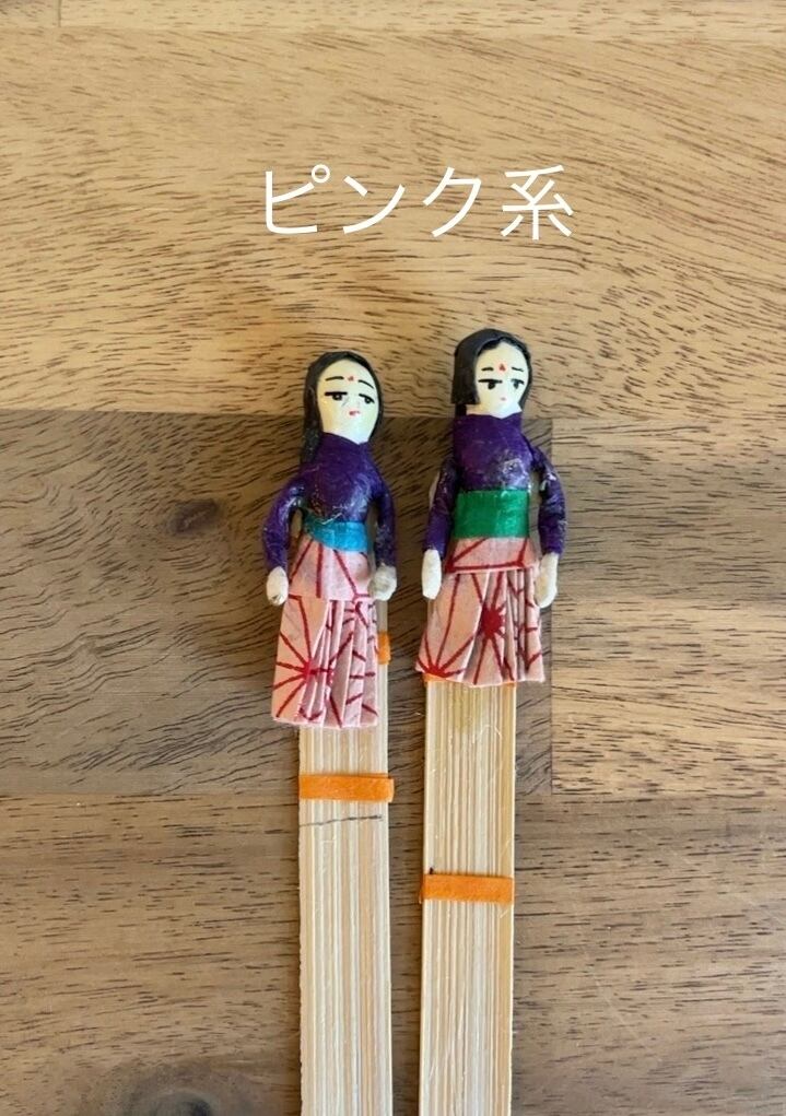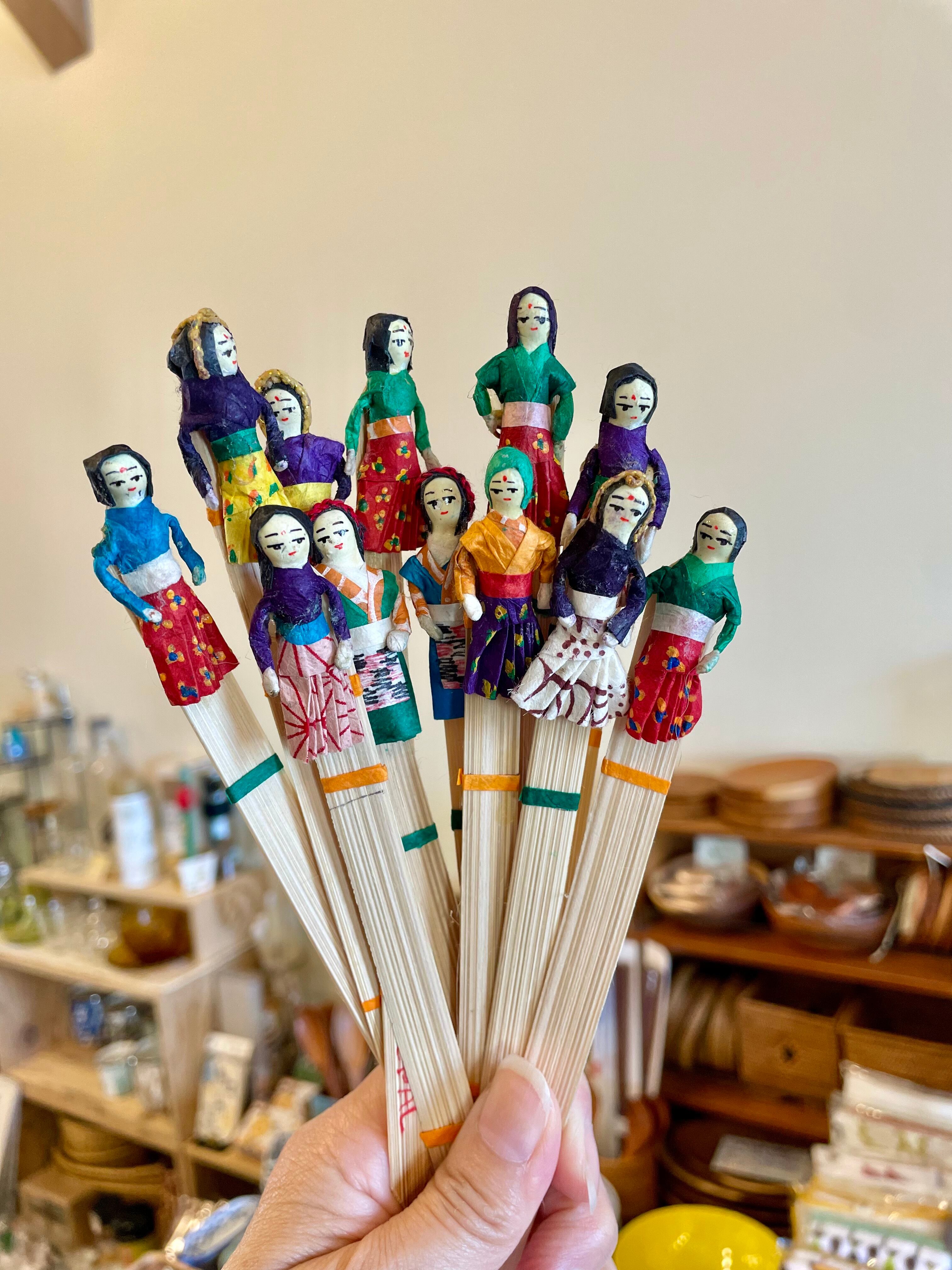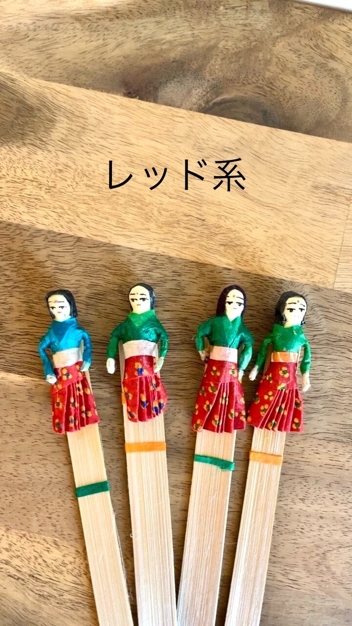 ネパールの街角で見つけた可愛らしい竹の栞です。サリーなどの伝統衣装を来た女性がモチーフになっていて、ひとつひとつ丁寧に作り込まれています。本体部分は薄く削った竹で出来ており、自然な手触りが柔らかくなんともほっこりする仕上がり。ネパールの文化や風景を感じさせる素敵な逸品です。色鮮やかなサリーの柄や、女性の表情やポーズが、読書の合間に目を楽しませてくれます。