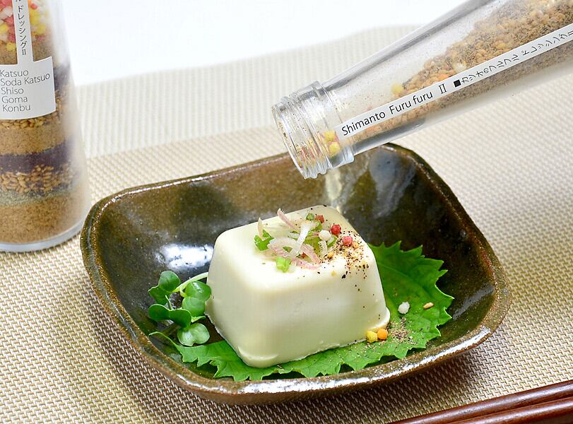 サラダのマンネリ化を解消!!「しまんとフルフルドレッシング」日本でも世界でも類を見ない、鰹節や貴重な宗田鰹節の粉をベースに、昆布・煎り胡麻・ぶぶあられに青のりや梅しそが原材料の、粉のドレッシング。それだけで、サラダのドレッシングに!また、いつものドレッシングにこれをチョイ足しで、いつもと違った味に早変わり!