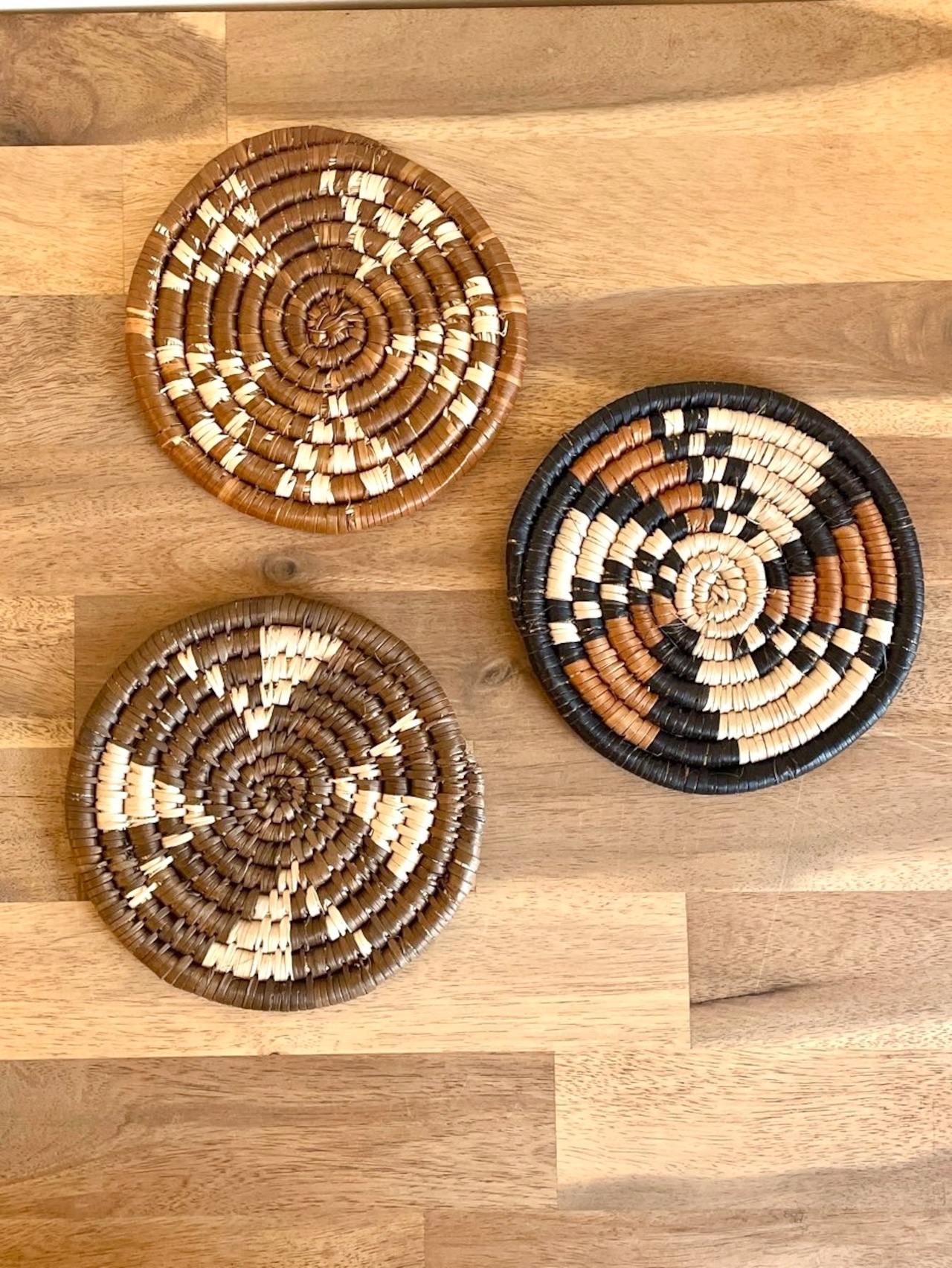 南アフリカを代表する高級バスケット「ズールーバスケット」シリーズより美しいコースターが届きました。