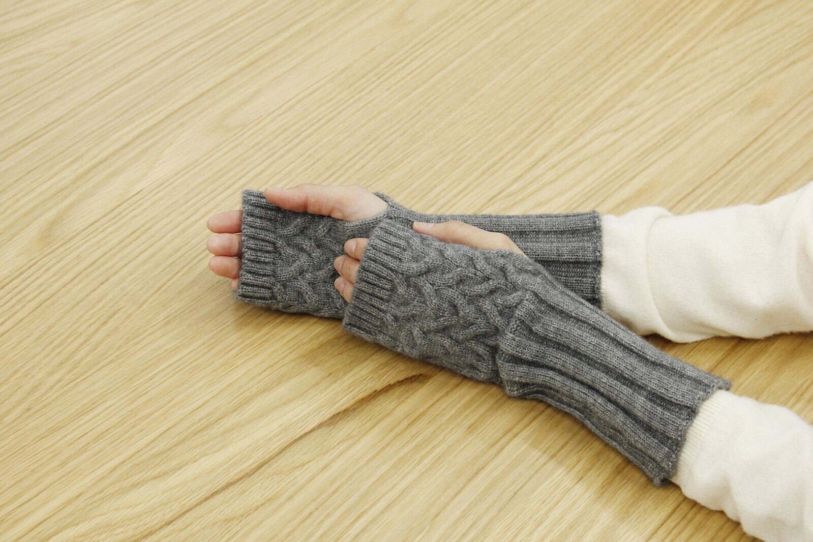 ケーブル編みリブ編みを組み合わせたニットハンドウォーマーです。