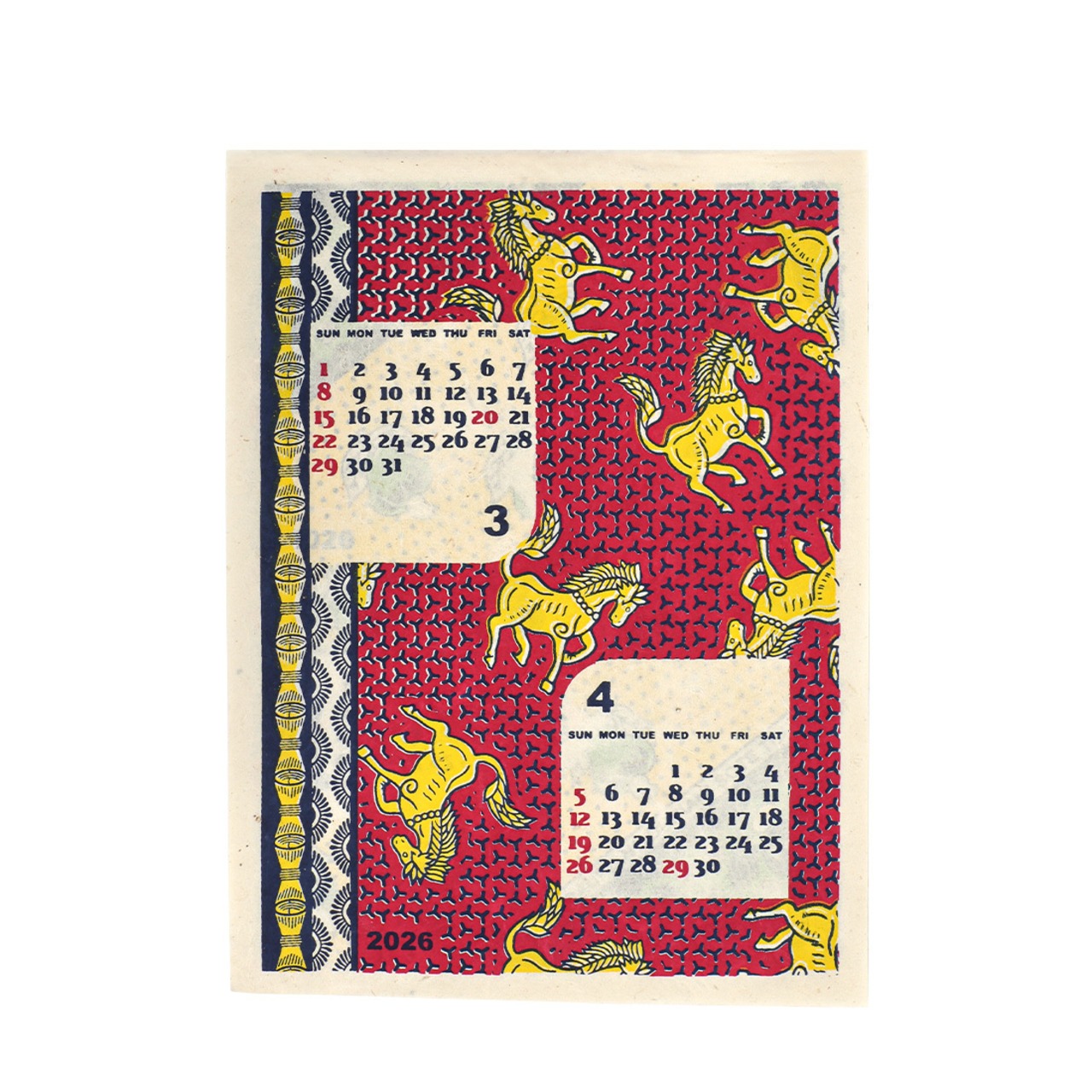 ネパールの手漉き紙を使ったハンドペイントのカレンダー。