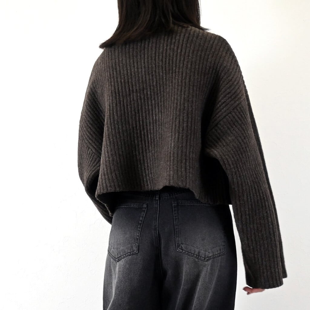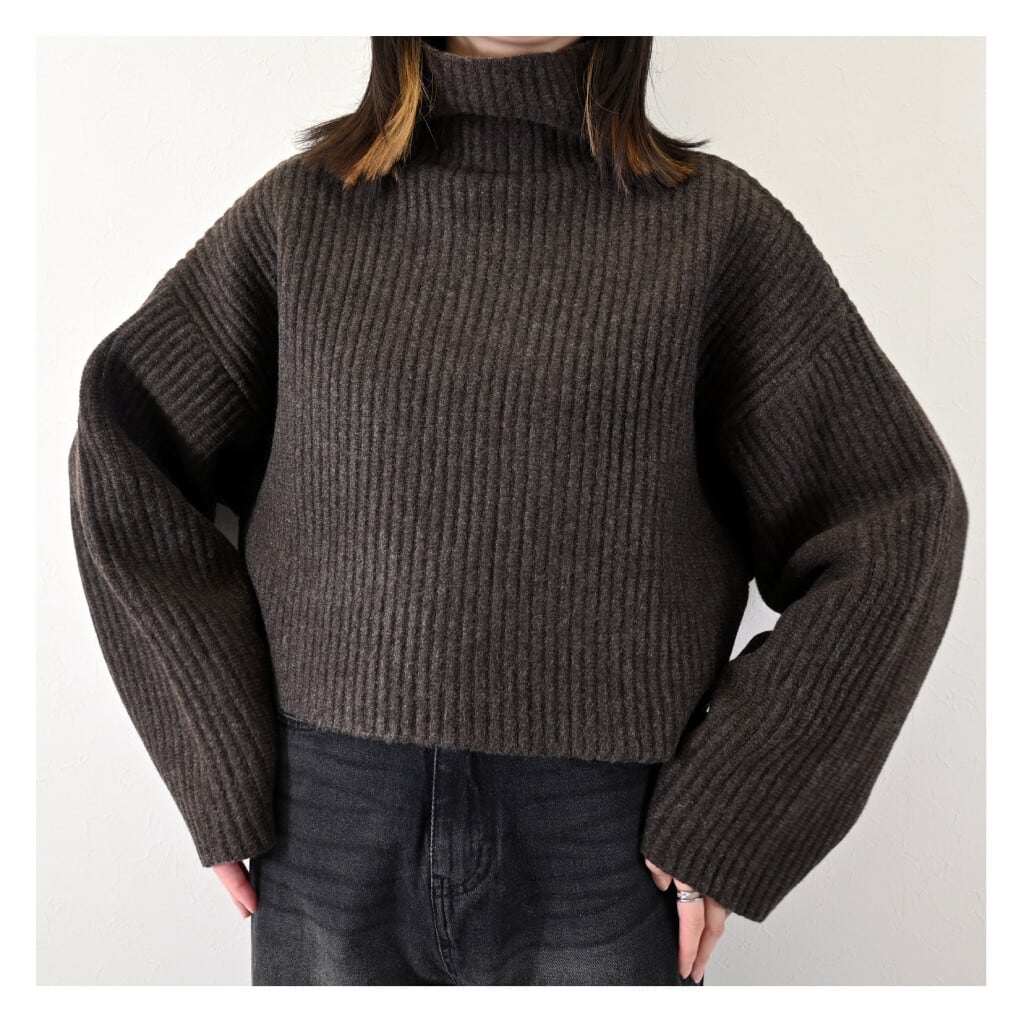 ソリッドストライプニット ボトルネック ショート プルオーバー!☆