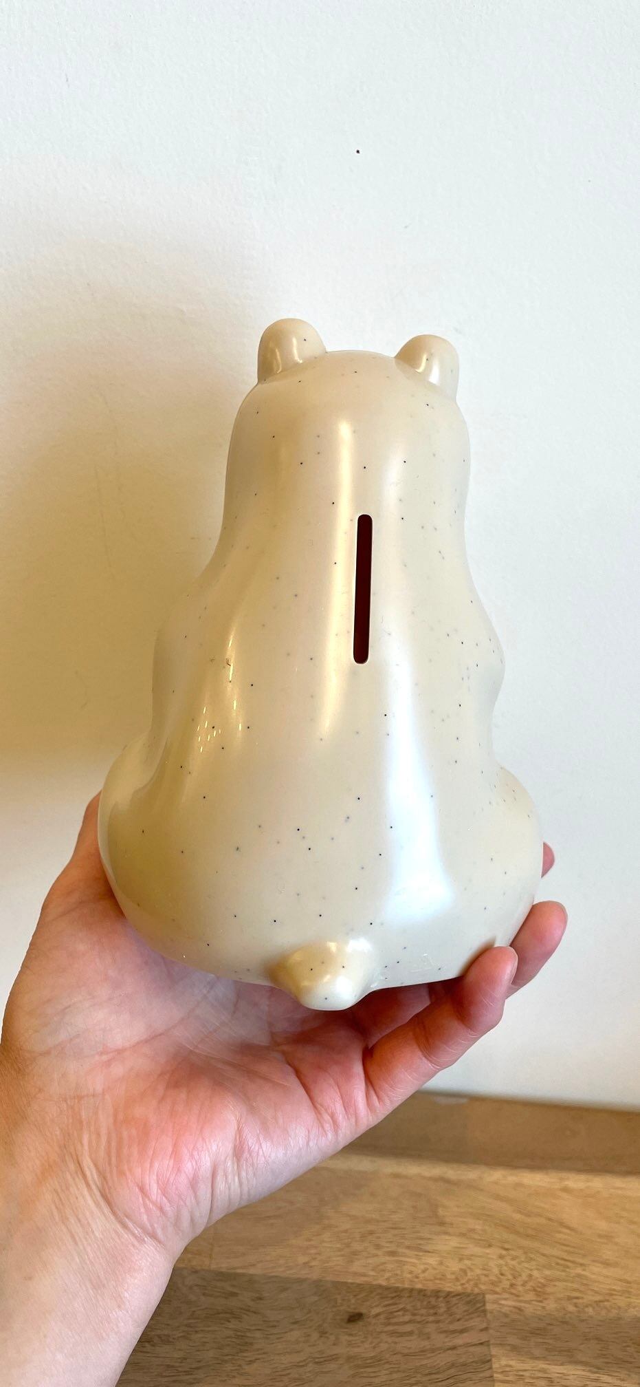 ぽってりとしたやさしいフォルムに、愛嬌のあるとぼけた表情。愛らしい佇まいが魅力のシロクマ貯金箱です。もともとは1970年頃、フィンランドのノルデア銀行がノベルティとして子どもたちにプレゼントしていたもの。当時の型が見つかったことにより復刻生産され、現代でも愛され続けています。