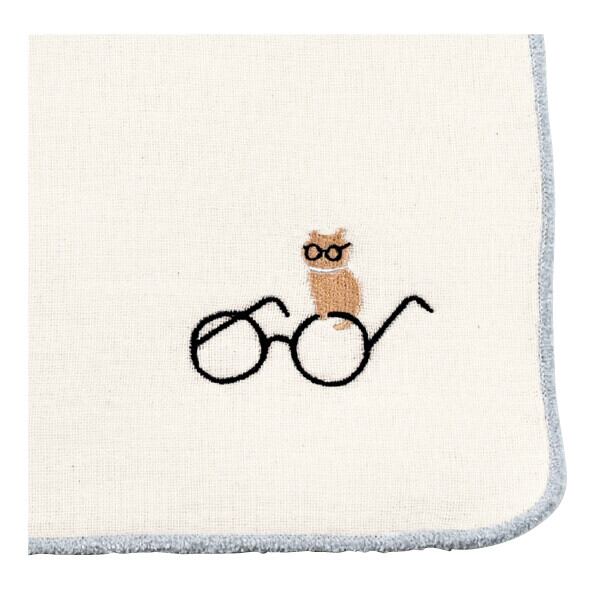 【濱文様】 モール糸タオルハンカチ ねことめがね (日本製)