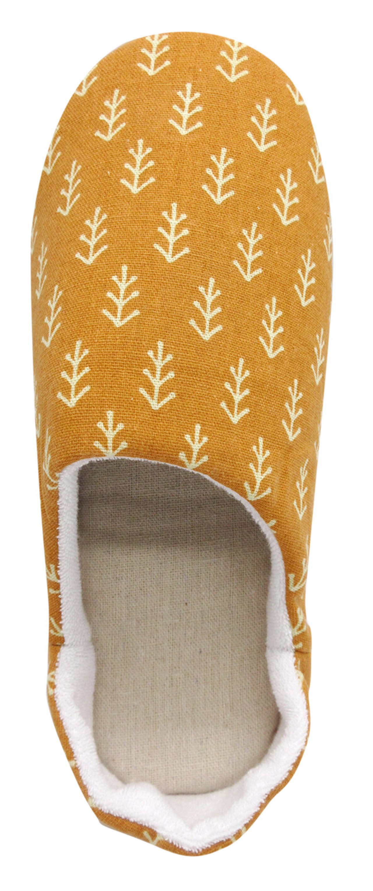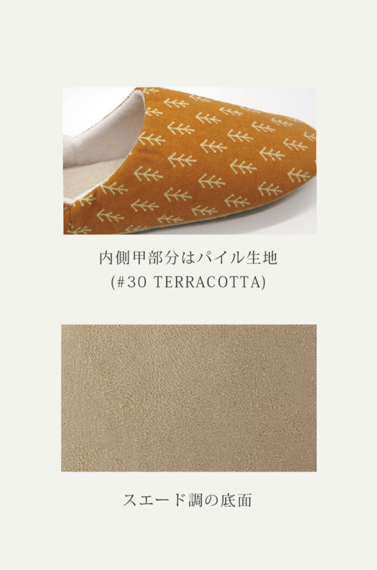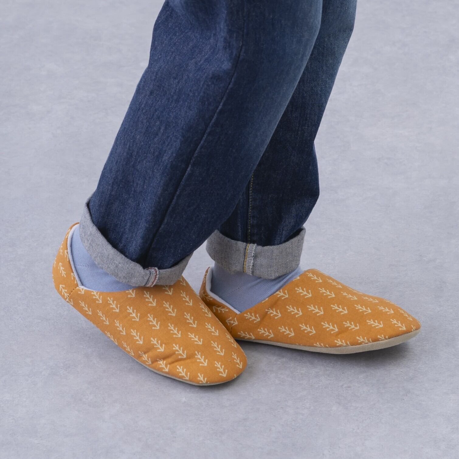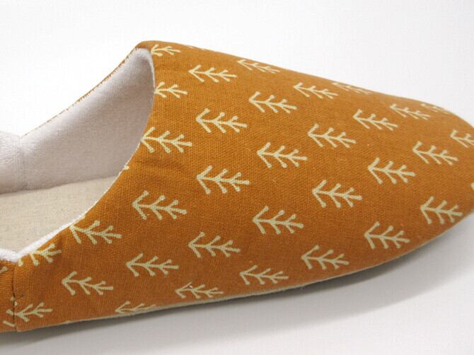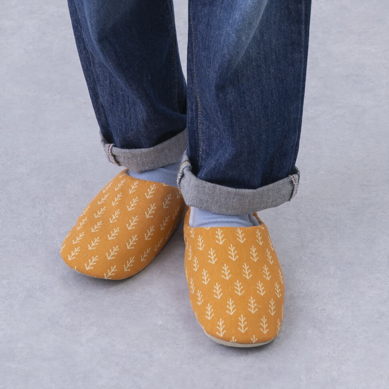 ナチュラルな植物たちがデザインされたバブーシュスリッパ。優しいカラー展開でリラックス効果も抜群。おうち時間を優しく彩ってくれます。バブーシュタイプで着脱も簡単。底面はスエード調の生地を使用している為、フローリングでも滑りにくいのがうれしいポイントです。