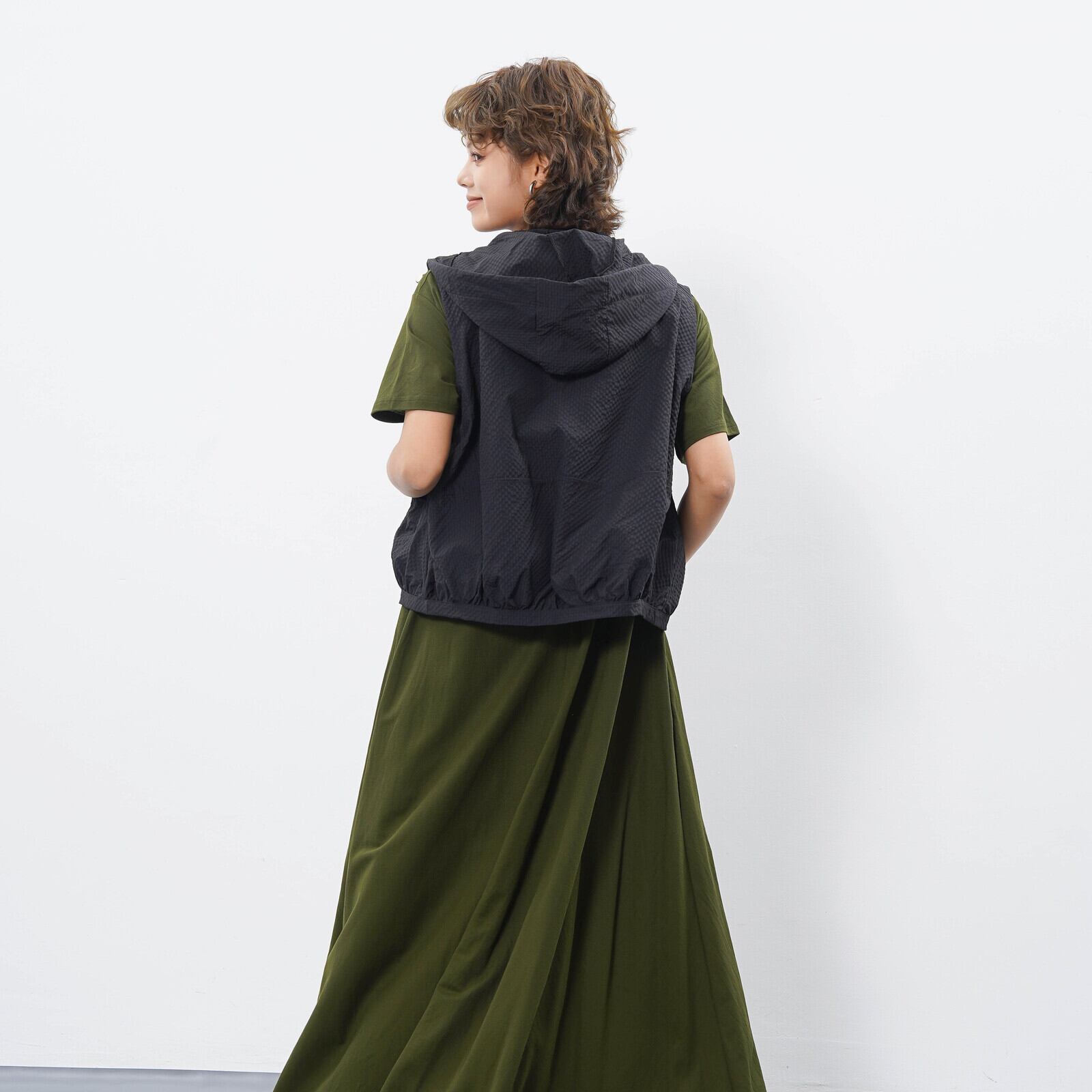羽織るだけでコーデが決まる、軽やかなフーディーベスト。