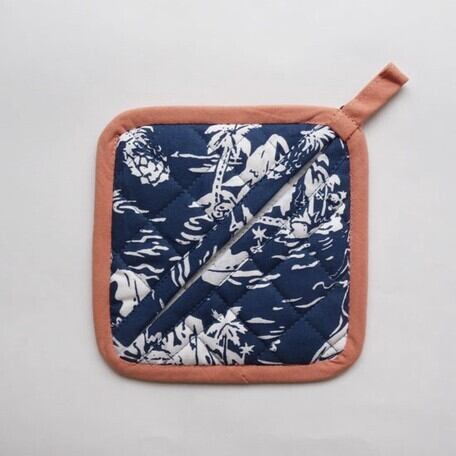 アロハミトン/ブルー 約16x16cm(鍋つかみ・鍋布き)