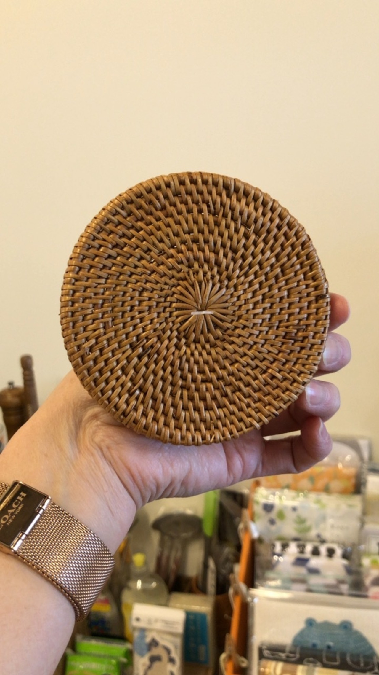 アタ製品の特長である飴色の艶は、編んだ後にココナッツの実を使って燻すことによりつけられます。
