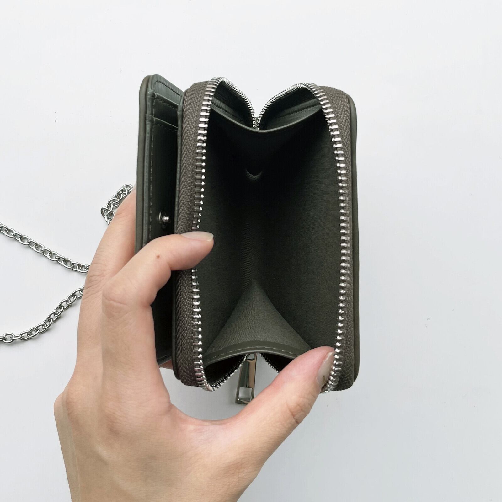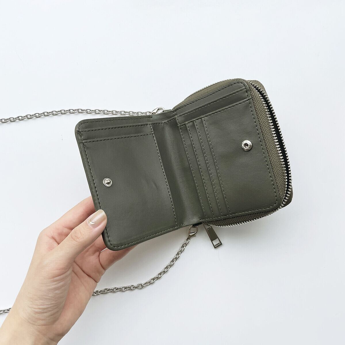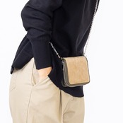 小ぶりなサイズ感で着回しやすいミニショルダーバッグ。スエード生地のような肌触りで、秋冬のコーディネートのポイントアイテムに。細めのチェーンショルダーが女性らしい華奢な印象に。コインケース部分には小物も収納可能で、シーンによって使い方は様々です◎