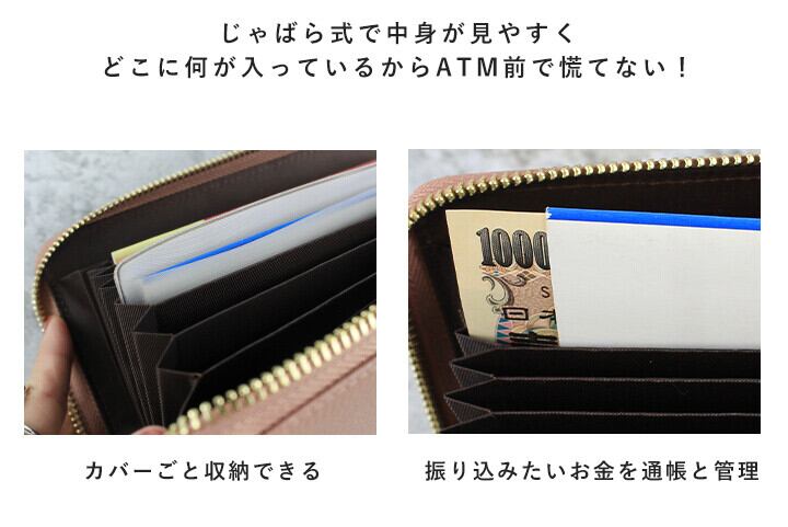 じゃばら式で出し入れしやすく、中身も一目でわかる通帳ケース。