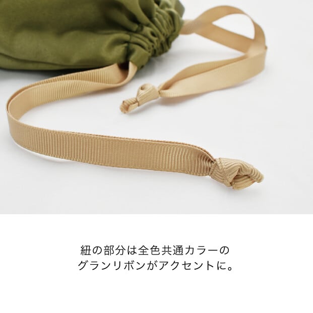 コロンとした巾着ポーチ付きで、持ち歩きも可愛い見た目に。フォーマルでもカジュアルでも幅広しシーンで活躍します。